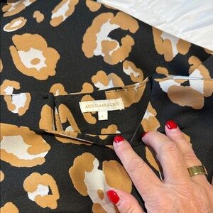 Chic and stylish sleeveless dress featuring a bold leopard print. Perfect for making a statement at any event. The black and tan colors add a touch of elegance. High end brand! Large