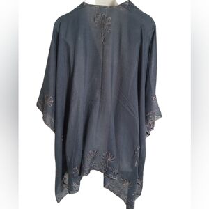 Natural Life Embroidered Floral Shawl Kimono Draped Wrap Poncho Gray One Size
