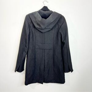 Zenobia black ribbed knit hooded button front spring fall jacket coat 6