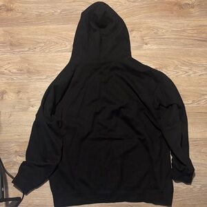 Stylish black hoodie with colorful 'Luxury' print. Comfortable and trendy.