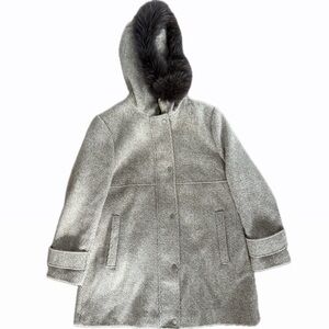 Chic fur pea coat with a cozy hood. Ideal for cool weather.