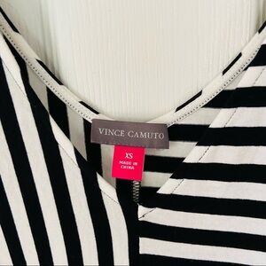 VINCE CAMUTO black & white striped asymmetrical sleeveless stretch shirt size XS