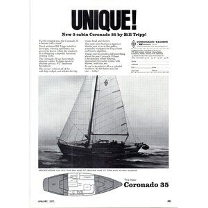 1971 Coronado 35 Sailing Yacht Vintage Print Ad Bill Tripp Nautical Wall Art