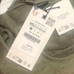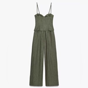 Zara NWT Olive Green Linen Blend Wide Leg Jumpsuit with Bow Details (Size Small)