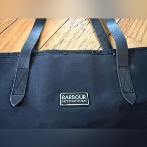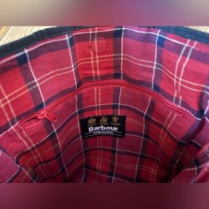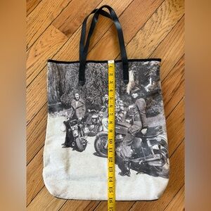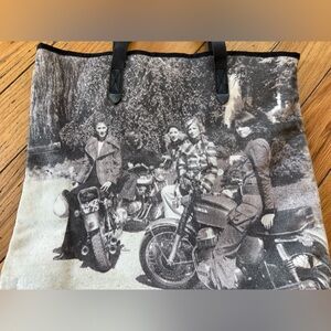 Barbour International Black/White 100% Cotton canvas tote/shoulder bag/purse. Features retro style women with motorcycles photo print. Red plaid lined. Good condition, some minor normal wear. No rips, holes or odors. Please see photos for item details/dimensions. Some photos may appear different in color due to lighting. Ships from smoke-free home.
