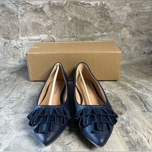 Step into chic style with the ballet flat by Journee Collection. This shoe features a classic pointed toe style with a ruffled design. The outsole is a beautiful faux leather fabric that keeps its silhouette shape. It's the perfect flat for any occasion.