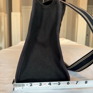 This 26 has a lot of space to carry as much or as little you like. space for an iPad, phone, makeup, two outside pockets for easy organization and a detachable strap with 24" drop for shoulder or crossbody wear.