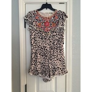 Savanna Jane Shorts Romper Womens Medium Cream Animal Print Embroidered Boho