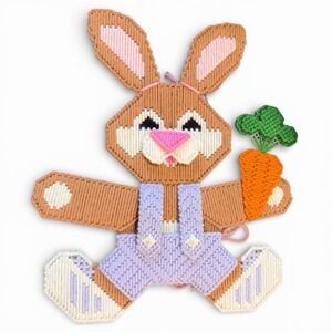 Vtg Finished Plastic Canvas Wall Hanging Easter Bunny Rabbit with Carrot 12"x9"