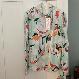 Elevate your wardrobe with this vibrant brand new long sleeve golf shirt. It is a size medium, long sleeves, zipper in front, colors of mint, orange, tan, white, & blue. Brand new with tags! ⛳️🏌️♀️⛳️🏌️♀️⛳️🏌️♀️