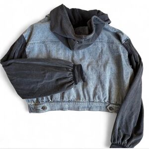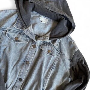 Oli & Hali Womens Denim Hooded Sweatshirt Jacket Button Cropped Layered Boho L