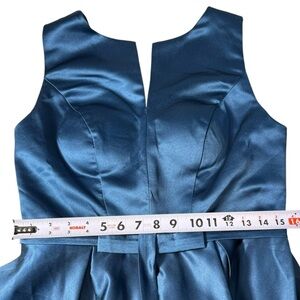 TS Couture A-Line Corset Back Puff Dress Womens Size L Blue Satin Gown Dress