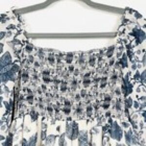 Sachin & Babi Blue Floral Smocked Square Neck Puff-Sleeve Lola Mini Dress SZ small