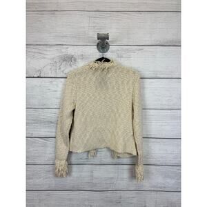 Zara Women's Ivory Knit Fringe Wool Blend Sweater Cardigan Size Small