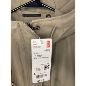 Get ready for anything with this stylish and comfortable Uniqlo parka! This women's cotton blend short parka puffer jacket in khaki is brand new and ready to be your go-to outerwear piece.