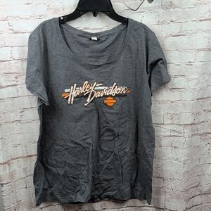 Gray Harley-Davidson t-shirt with orange and white logo. xl like new