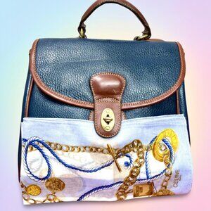 VTG USA Coach Turn Lock 4226 Leather Teal Blue Crossbody + Celine Handkercief