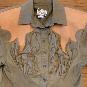 Vtg Jon Wesley Western Army Green Jumpsuit 1980s Women's Sz 8 Rockabilly
