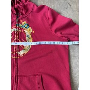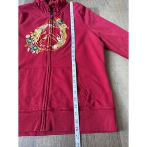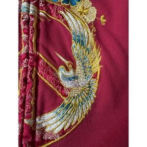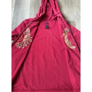 Lucky Brand Embroidered Zip Hoodie Asian Art Bird Floral Graphic Red Size XL