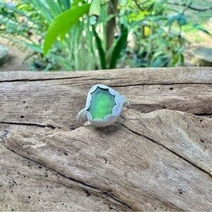 green sea glass natural tumbled floral sterling & fine silver
