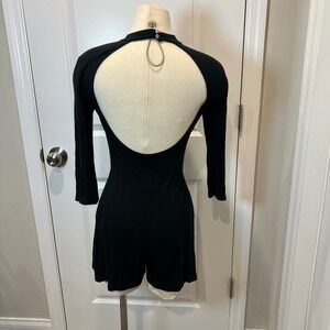 Black Ribbed Mock Neck Cutout Back Long Sleeve Romper