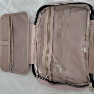 Special Design - Inner main pockets with elastic straps hold bottles upright; Double zipper compartment for easy access the items even not full-opened the bag; Transparent sides for providing clear overview of contents.