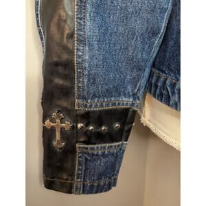 🧥 Gordon and James Shirt Co. Vintage Studded Silver Cross Sleeve Denim Jacket L