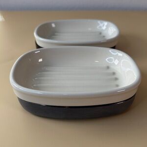 Set of two white ceramic soap dishes. Elegant and functional design.