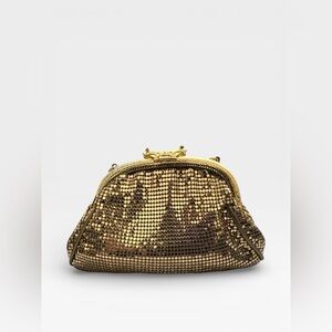 Vintage Whiting & Davis Gold Metal Mesh Evening Bag Clutch w/Rhinestone Clasp