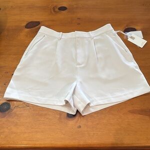 High-waist is here to stay and we especially love this style short.Introducing the Luxe Suiting Trouser Shorts by Good American, a sophisticated blend of style and comfort crafted for the modern woman. These white, high-waisted shorts feature a pleated front design, banded waist with belt loops, and a tailored fit, making them ideal for any occasion. Composed of 100% polyester stretch-weave fabric, they offer a slight give, enhancing both structure and comfort. These shorts come with side on-seam slit pockets, back welt pockets, and a zip-fly button closure. Care instructions are simple - machine wash for easy maintenance.