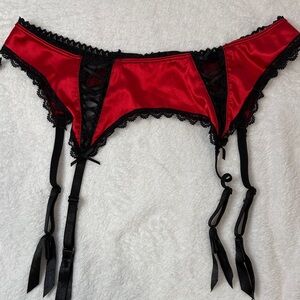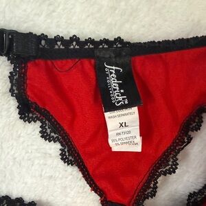 2 Frederick’s of Hollywood red and black garter belt with Lacey details adjustable strap Sz XL
