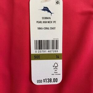 Tommy Bahama Pearl High Neck One-Piece Swimsuit, Coral Coast, Size 14, NWT