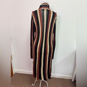 NWT INC Striped Black Orange Metallic Duster Cardigan, Sz M