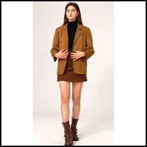 Brand new with tags, this elegant faux suede blazer offers a vintage-inspired look perfect for elevating your casual, work, or evening wardrobe. The double-layered lining provides exceptional warmth and a windproof feel for comfortable wear across multiple seasons.