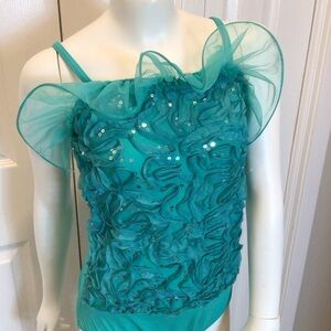 Weissman Teal Green Ruffled Sequin Dance Leotard Size Adult Medium.