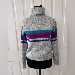 1980s VINTAGE DIANE VON FURSTENBERG Sweater Sz S Wool Blend Gray Red Blue Stripe