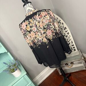 Joie Boho Ruffle Floral Blouse Size 1X NWOT Sheer Overlay Cottage Core