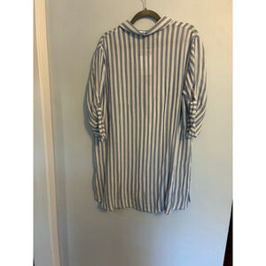 NWT Raviya blue and white striped tunic. Tunic is a shift type garment. Has a v-neck and roll up sleeves. Very light would be perfect for the heat of summer.