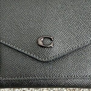 Elegant black Coach wallet. Sleek design with signature logo. Perfect for everyday use.