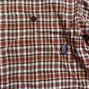 Patagonia Shirt Mens Medium Red Brown Plaid Long Sleeve Button Up Organic Cotton