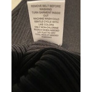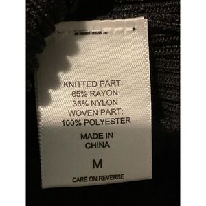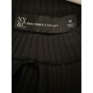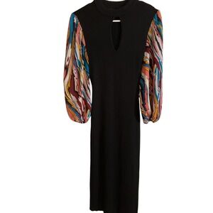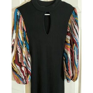 New York & Company Black Ribbed Knit Midi Dress Abstract Puff Sleeve Keyhole M