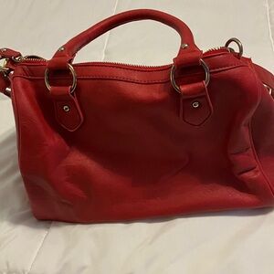Bold red shoulder bag with striking stud details. Features a secure zip closure and adjustable strap. Ideal for adding a pop of color.