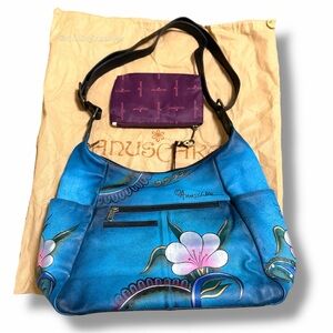 New with out tagAnuschka Hand Painted Large Multi Pocket Hobo Handbag Denim Paisley Floral 7060. Details: