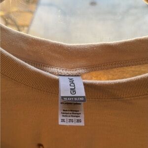 Comfortable Gildan crewneck in tan. Features stylish front text. Ideal for casual wear. “God is good, All the time”.