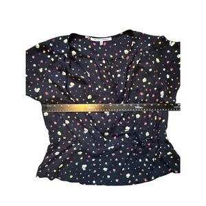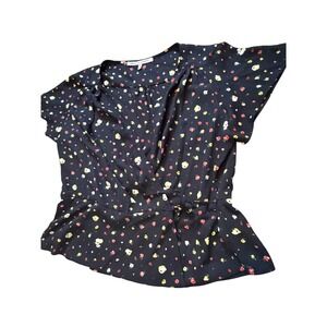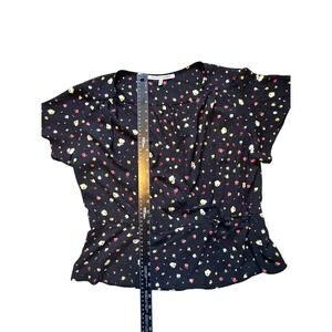 Collective Concepts Womens XL Black Floral Wrap Top Short Sleeve V-Neck Blouse