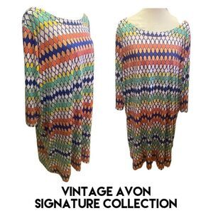 Signature Collection (Vintage Avon) Multi-Color Geometric Design Shift Dress Siz