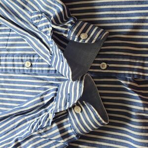 Classic blue and white stripes. Button-down design. Ideal for that young guy to look all put together!