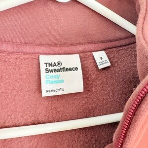 Aritzia TNA Sweatfleece Cozy Perfect 1/4 Zip Sweatshirt Cropped Brick Red Small
