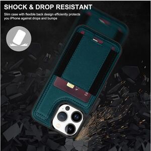 Green iPhone 15 Pro Leather Wallet Case RFID Blocking Magnetic Closure