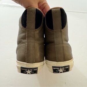 Converse One Star Academy High leather sneakers. Color is an olive green/grayish with black suede detail. Rare style, good used condition. Unisex size men’s 9, women’s 10.5. I do not have the original box. Feel free to ask any questions.
